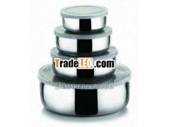 These simple bowls made from Stainless steel wid lid(cover) inPlastic.| S.No | Item Code | Size | Capcity | Packing | Finish | Description |